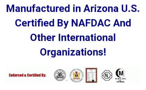 Our products are manufactured in Arizona U.S. Certified by NAFDAC and Other International organizations.